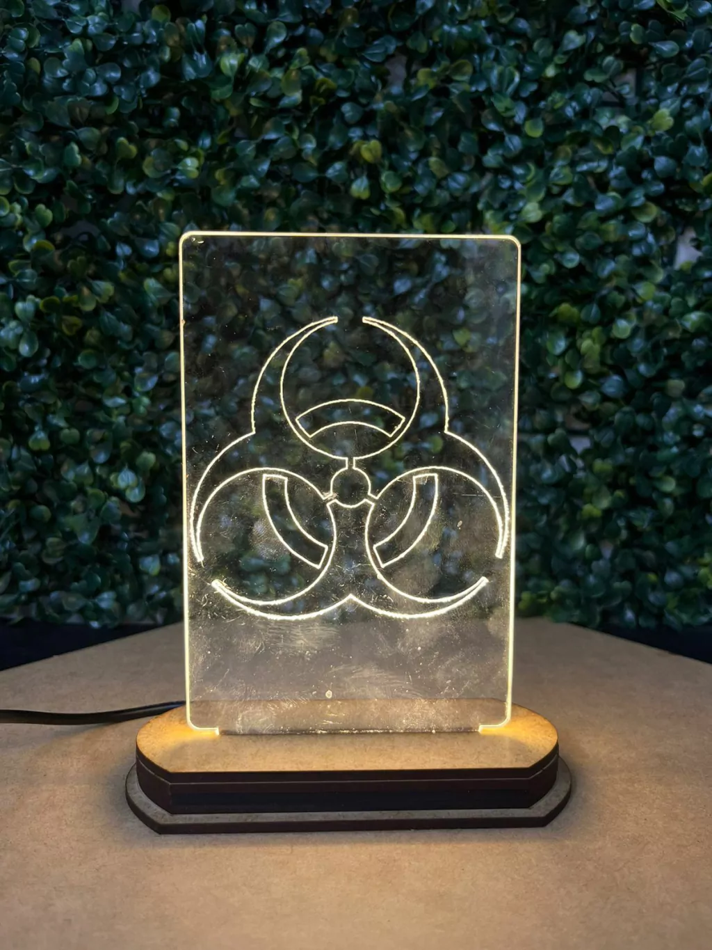 Placa de acrílico com gravação a laser, base LED 3000K para iluminação aconchegante ou com LED RGB para iluminação cheia de estilo da placa, alimentação com cabo USB A que pode ser conectado a carregadores de celular (não incluso).