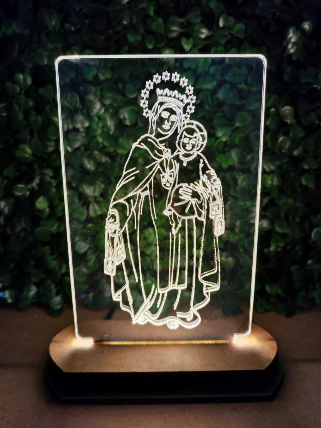 Placa de acrílico com gravação a laser, base LED 3000K para iluminação aconchegante ou com LED RGB para iluminação cheia de estilo da placa, alimentação com cabo USB A que pode ser conectado a carregadores de celular (não incluso).