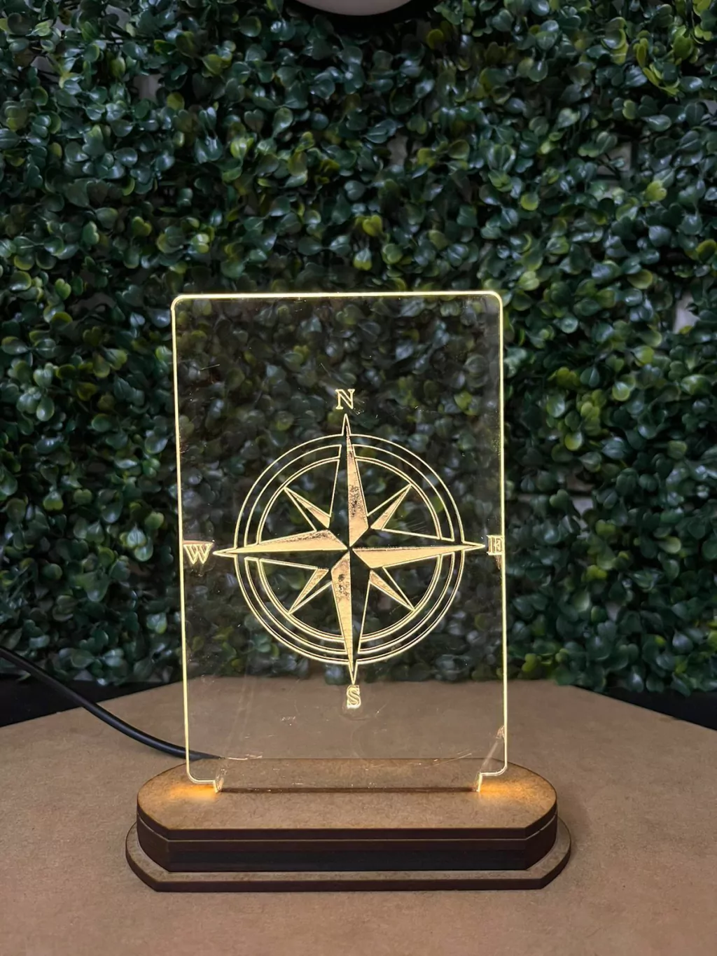 Placa de acrílico com gravação a laser, base LED 3000K para iluminação aconchegante ou com LED RGB para iluminação cheia de estilo da placa, alimentação com cabo USB A que pode ser conectado a carregadores de celular (não incluso).