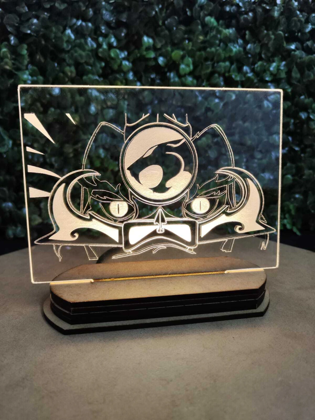 Placa de acrílico com gravação a laser, base LED 3000K para iluminação aconchegante ou com LED RGB para iluminação cheia de estilo da placa, alimentação com cabo USB A que pode ser conectado a carregadores de celular (não incluso).