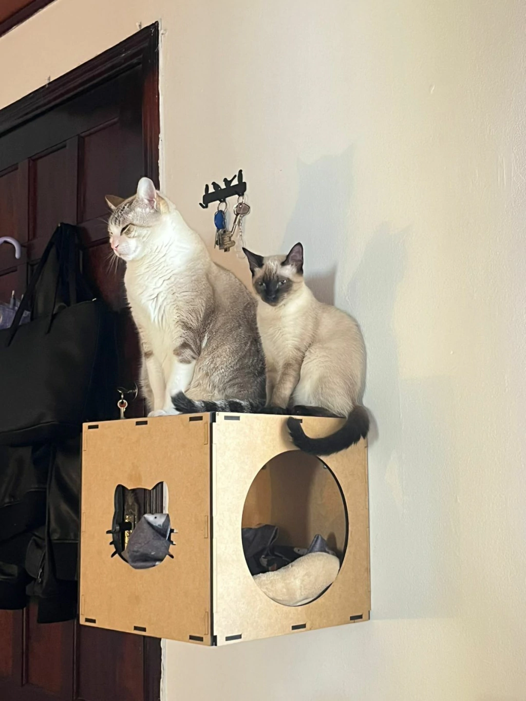 Furos na parte trazeira para fixação na parede. Também pode ser utilizado no chão, mas geralmente os felinos gostam de ter uma boa visão superior 😺