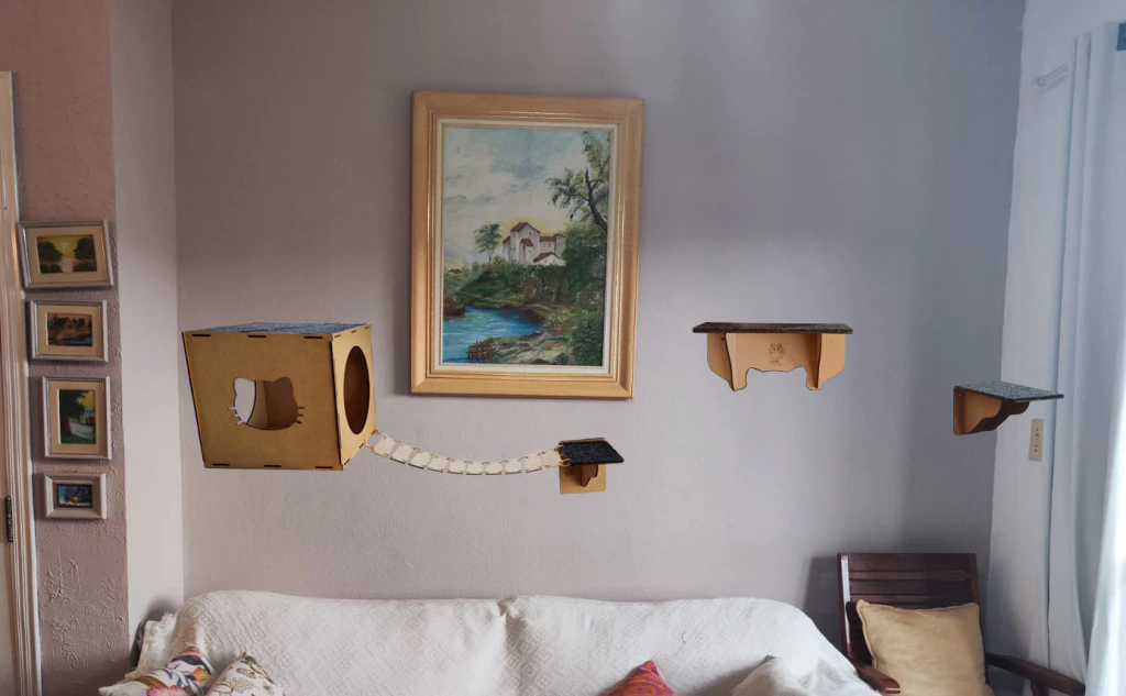 O Kit de playground para gatos, em MDF, contem os seguintes itens: